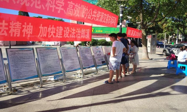 郎溪讯 7月13日上午,为进一步宣传公共资源交易相关法律法规,让社会各界了解招投标,关注招投标,切实增强业主单位和投标企业依法依规开展招投标活动的法治观念,县公管局联合县法宣办,会同住建、财政、国资、公安、司法、水务、交运、农委、重点局、政务中心及郎溪经济开发区、十字经济开发区,在法治广场开展了《中华人民共和国招标投标法》专项法治宣传活动。在建重点项目负责人、项目代理机构、县建筑企业负责人以及广大市民参与了此次活动。